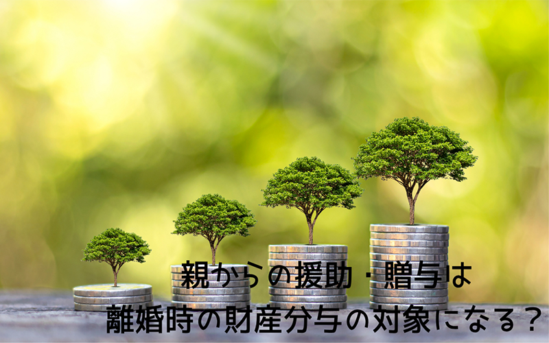 親からの援助・贈与があることは多く、それが離婚時の財産分与の対象となるかどうかは、援助・贈与の時期や使途、方法やその後の財産状態というような要素によって判断されます。また、立証ができるかと言う点も大きなポイントとなります。