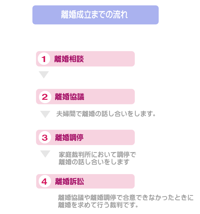 財産分与の請求は、離婚前あるいは離婚後に行うことができます。離婚成立までの流れは以下のようになります。